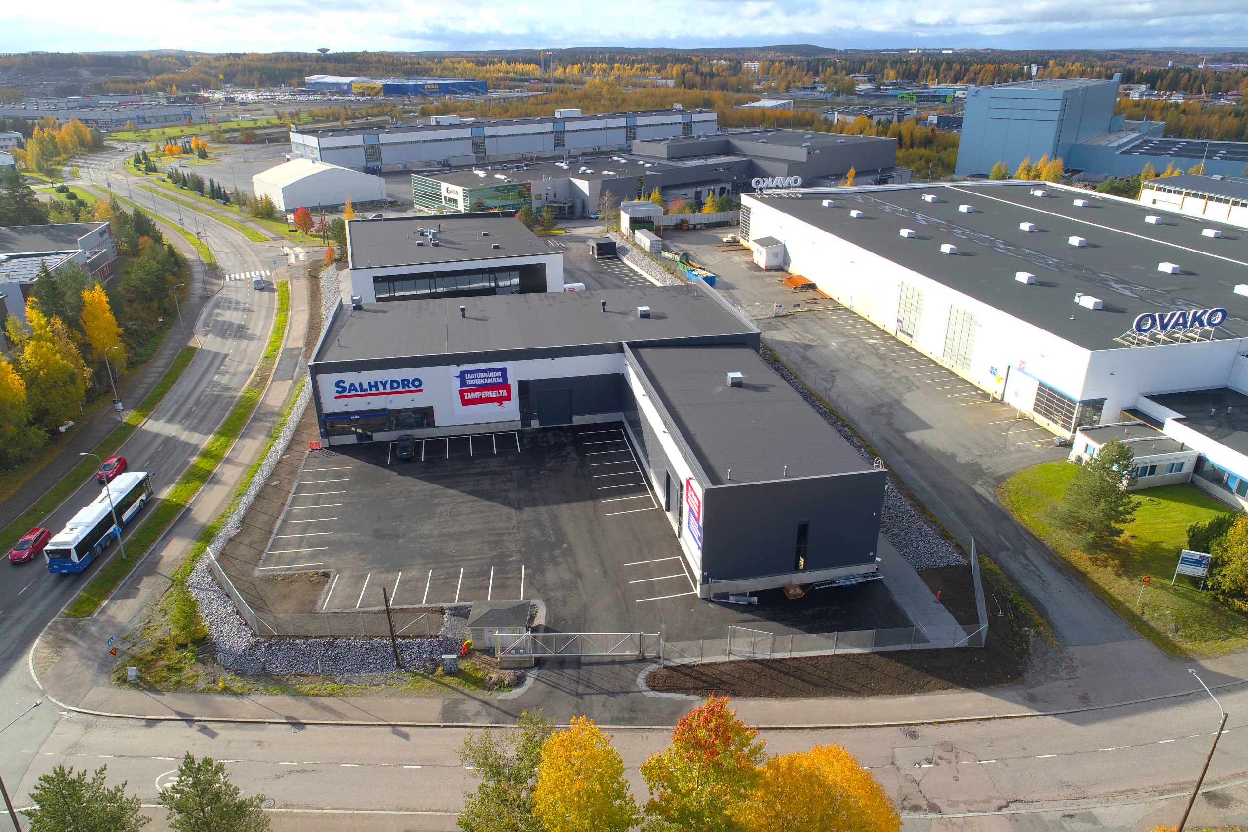 Olemme rakentaneet noin 2000 m² toimitilahankkeen Salhydro Oy:lle Tampereen Lahdesjärvelle. Hankkeen rakentaminen aloitettiin syksyllä 2023, ja luovutimme uudet toimitilat asiakkaalle aikataulussa syksyllä 2024. Hankekokonaisuuteen sisältyi mittava varastohalli ja varastomyymälä, jotka suunnittelimme ja toteutimme vastaamaan asiakkaan tarpeita.